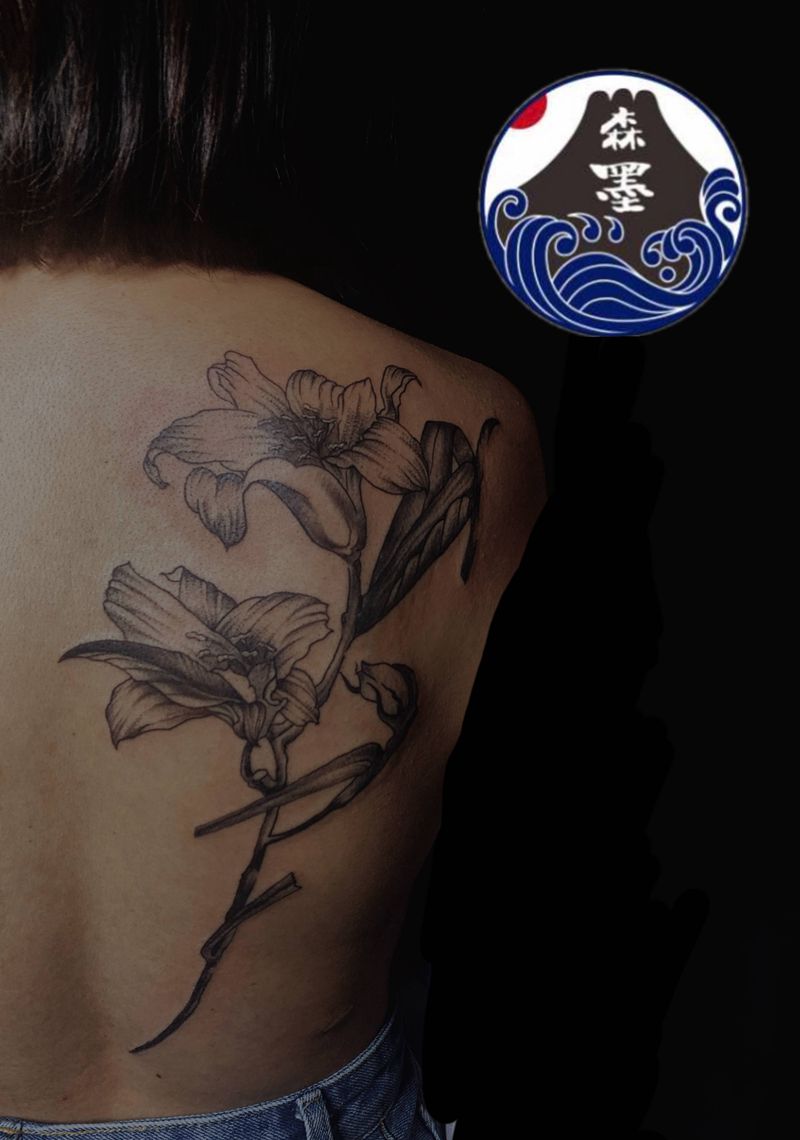 当前位置: 首页 >云南省西双版纳傣族自治州纹身店-森墨Tattoo纹身图案>百合纹身图片_背部纹身图案