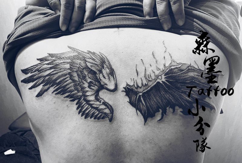 善与恶纹身图片_背部纹身图案