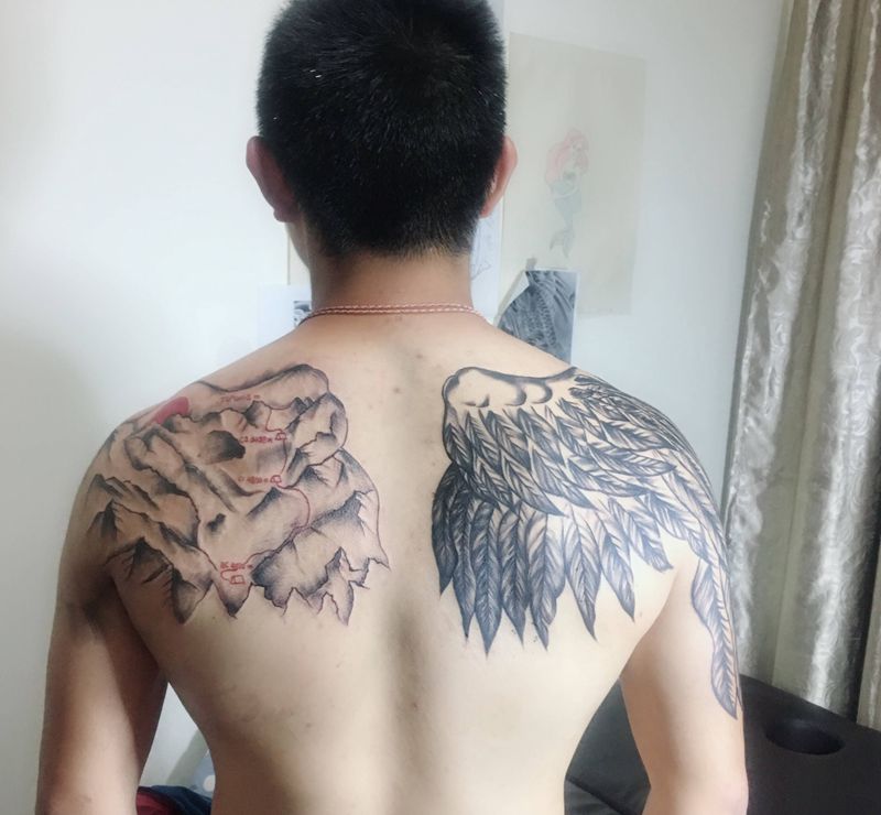 • 纹身吧推荐的披肩图腾半胛纹身图案作品展示