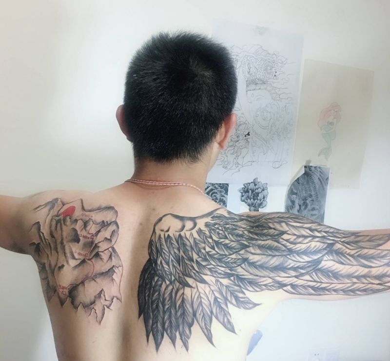 • 纹身吧推荐的披肩图腾半胛纹身图案作品展示