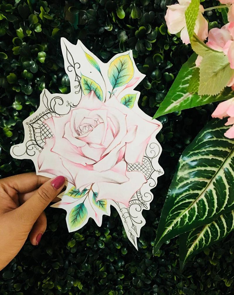 • 手背潮流时尚的玫瑰花眼睛纹身图案