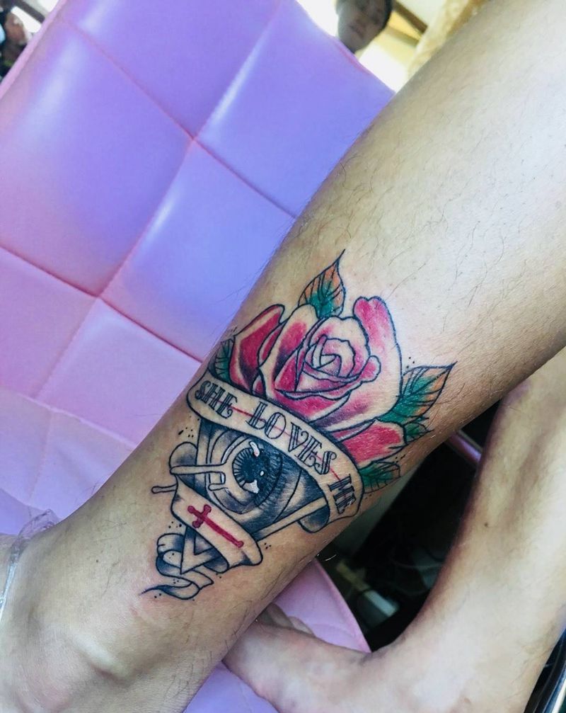 • 手背潮流时尚的玫瑰花眼睛纹身图案
