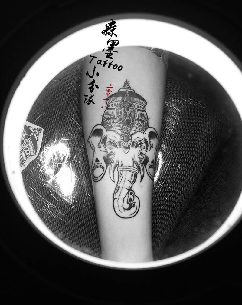 当前位置: 首页 >云南省西双版纳傣族自治州纹身店-森墨Tattoo纹身图案>象神纹身图片