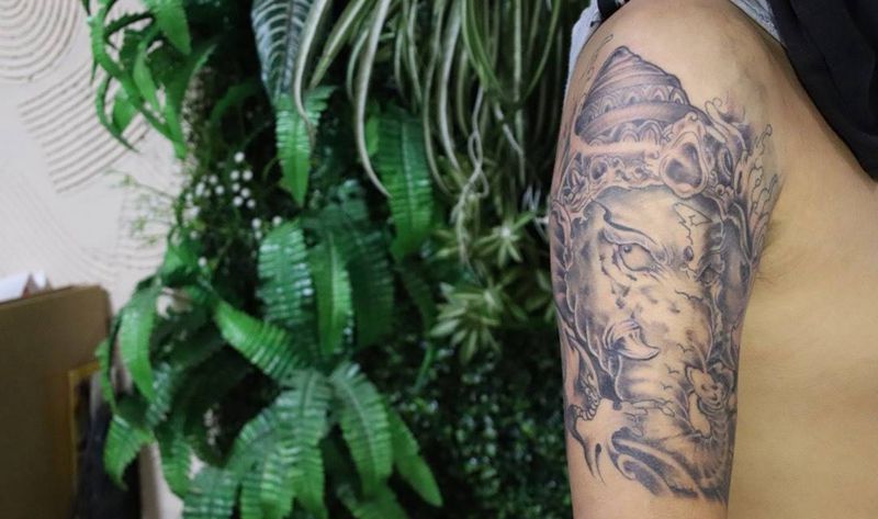 当前位置: 首页 >云南省西双版纳傣族自治州纹身店-森墨Tattoo纹身图案>象神纹身图片