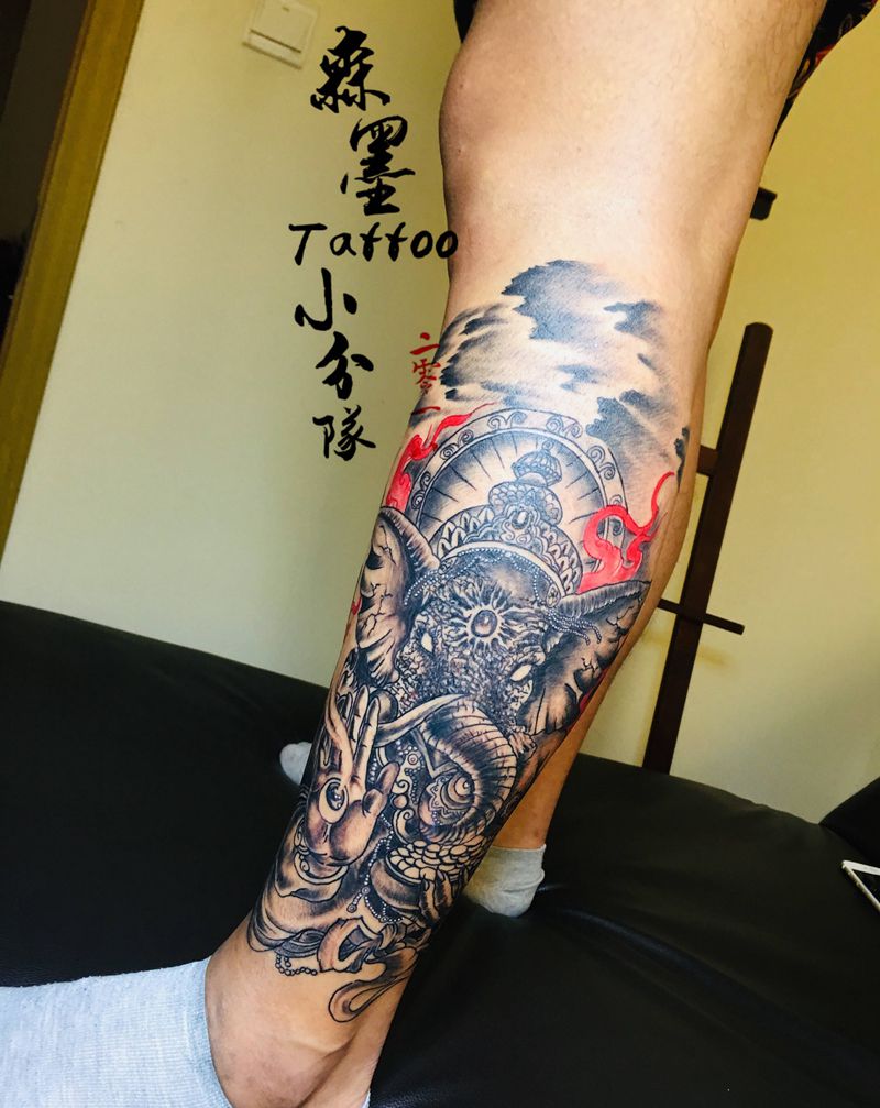 当前位置: 首页 >云南省西双版纳傣族自治州纹身店-森墨Tattoo纹身图案>象神纹身图片_腿部纹身图案