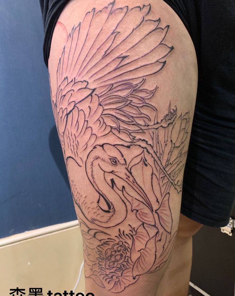 当前位置: 首页 >云南省西双版纳傣族自治州纹身店-森墨Tattoo纹身图案>仙鹤线条纹身图片_腿部老传统新传统纹身图案