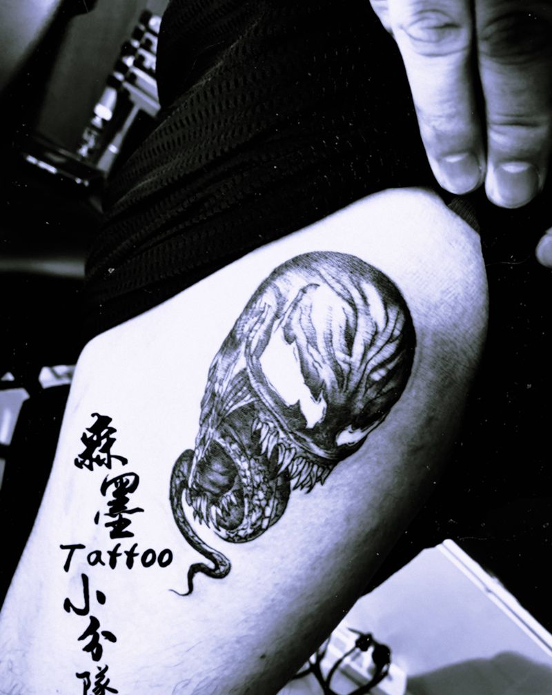 当前位置: 首页 >云南省西双版纳傣族自治州纹身店-森墨Tattoo纹身图案>毒液纹身图片_腿部纹身图案