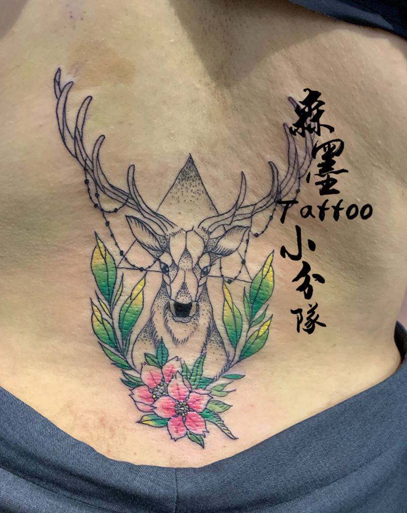 • 女性大花胸纹身_43张霸气漂亮的女性大花胸纹身图案作品