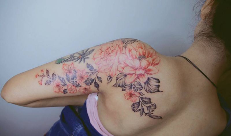 • 女性大花胸纹身_43张霸气漂亮的女性大花胸纹身图案作品