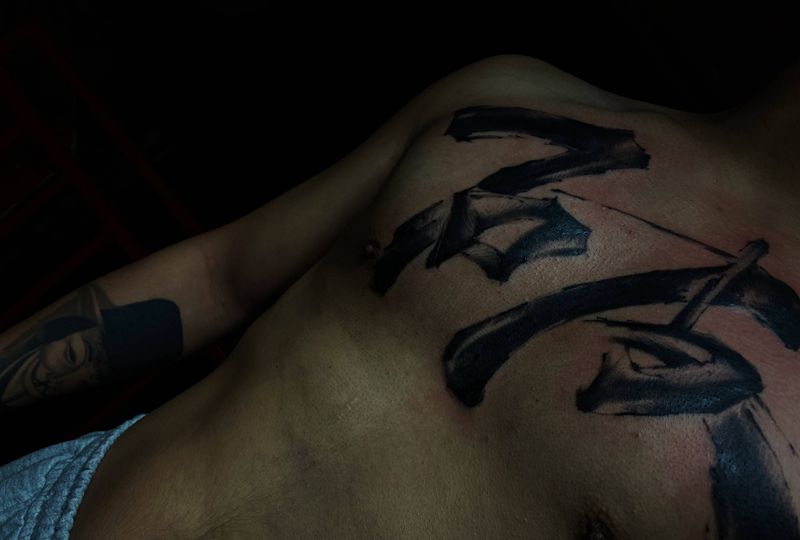 当前位置: 首页 >云南省红河哈尼族彝族自治州纹身店-MD刺青俱乐部纹身图案>书法原创纹身图片_胸部水墨纹身图案