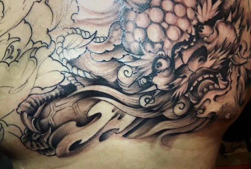 • T云龙九郎纹身图片_背部老传统云龙九郎纹身图案