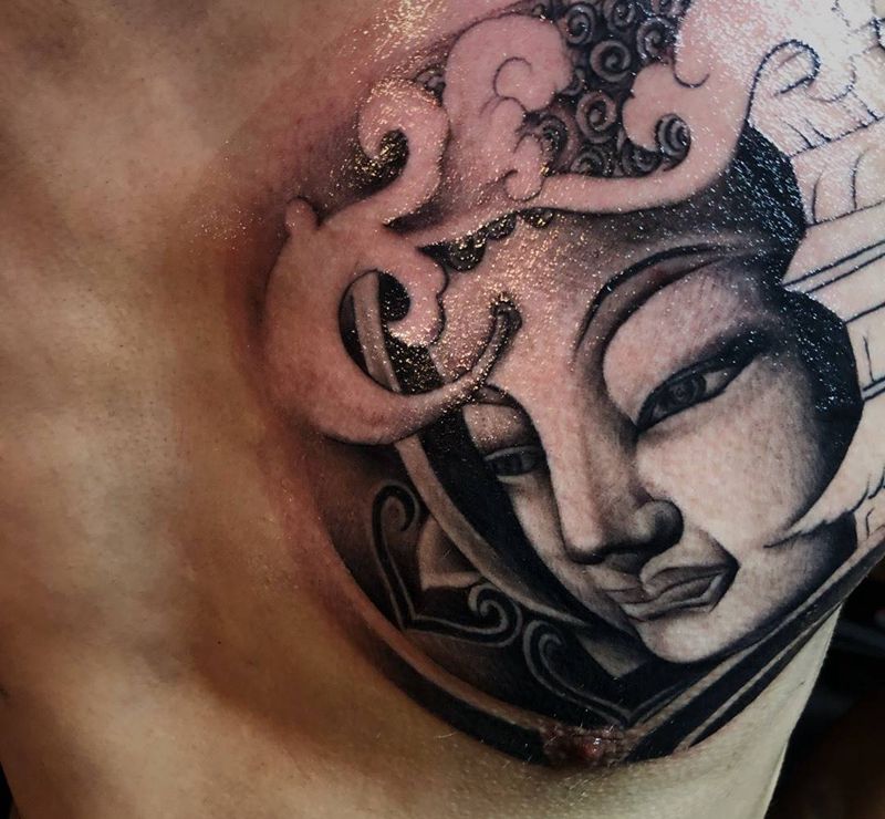 当前位置: 首页 >云南省红河哈尼族彝族自治州纹身店-MD刺青俱乐部纹身图案>半甲佛头纹身图片