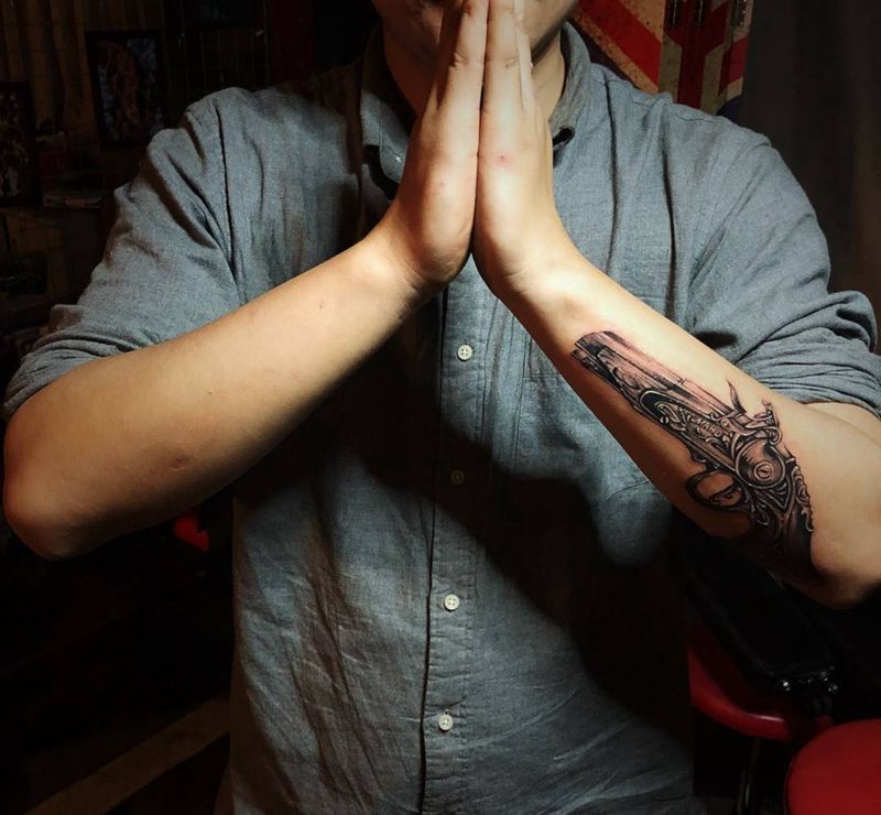当前位置: 首页 >云南省红河哈尼族彝族自治州纹身店-MD刺青俱乐部纹身图案>《枪》纹身图片