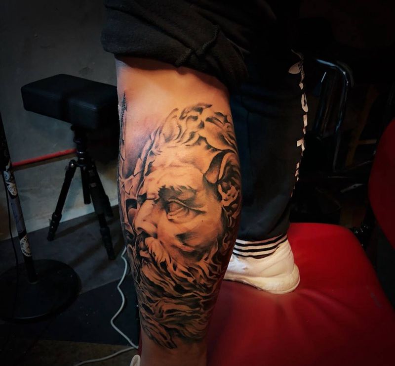• T网红王老大花腿龙纹身图片_腿部新传统纹身图案