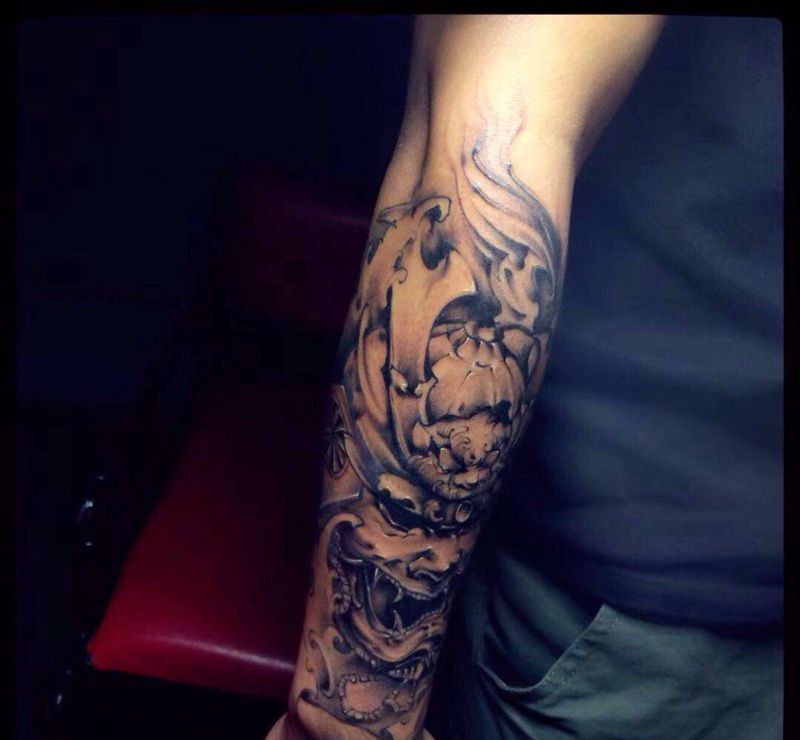 早期传统作品(鬼武士)纹身图片_手臂新传统纹身图案
