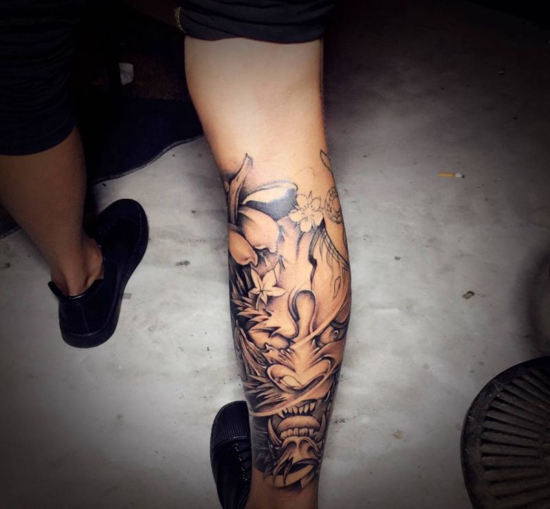 早期传统作品(般若)纹身图片_腿部新传统纹身图案