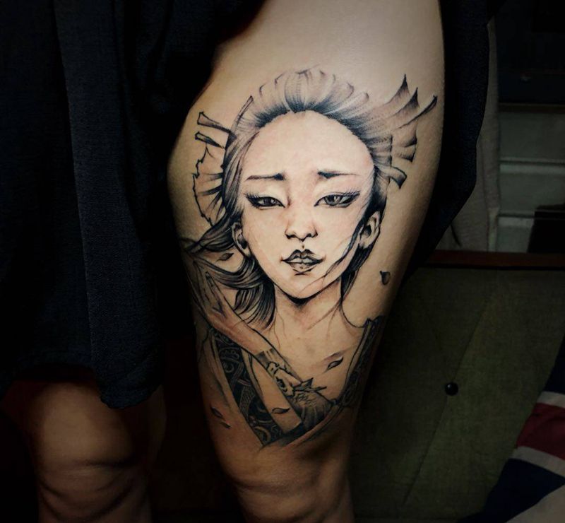 当前位置: 首页 >云南省红河哈尼族彝族自治州纹身店-MD刺青俱乐部纹身图案>早期传统作品纹身图片_腿部新传统纹身图案