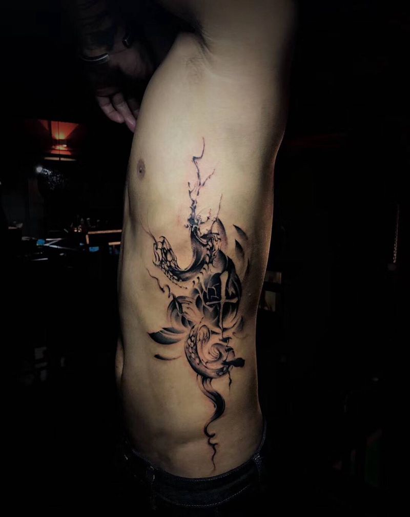 当前位置: 首页 >云南省红河哈尼族彝族自治州纹身店-MD刺青俱乐部纹身图案>蛇纹身图片_腰部水墨纹身图案
