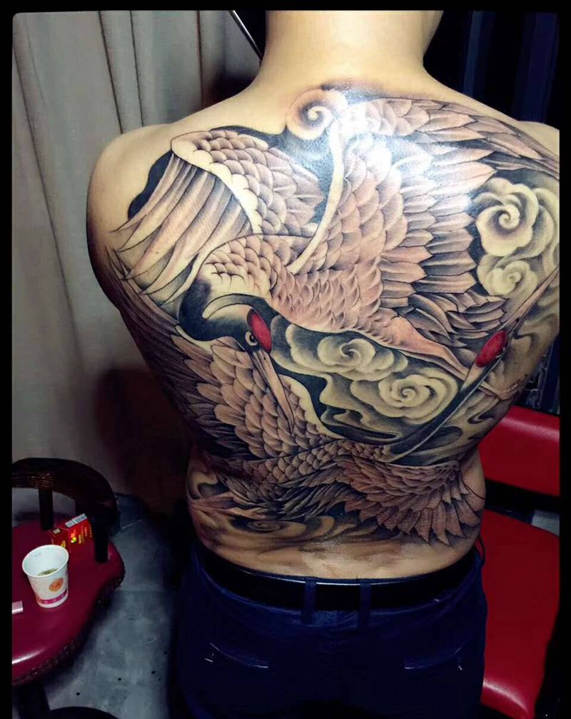 早期传统作品(鹤纹身图片_背部新传统纹身图案