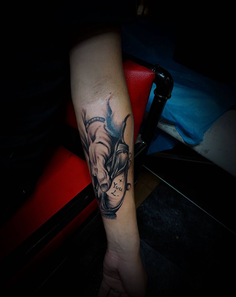 当前位置: 首页 >云南省红河哈尼族彝族自治州纹身店-MD刺青俱乐部纹身图案>素描纹身图片_手臂欧美写实纹身图案