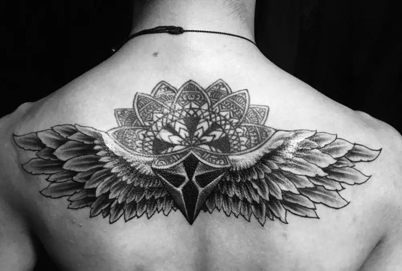 黑灰满背纹身图案