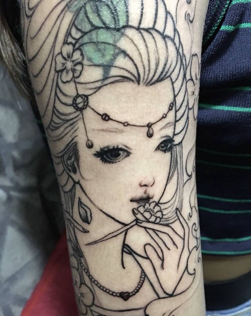 当前位置: 首页 >云南省文山苗族自治州纹身店-手绘主义刺客纹身图案>艺妓纹身图片
