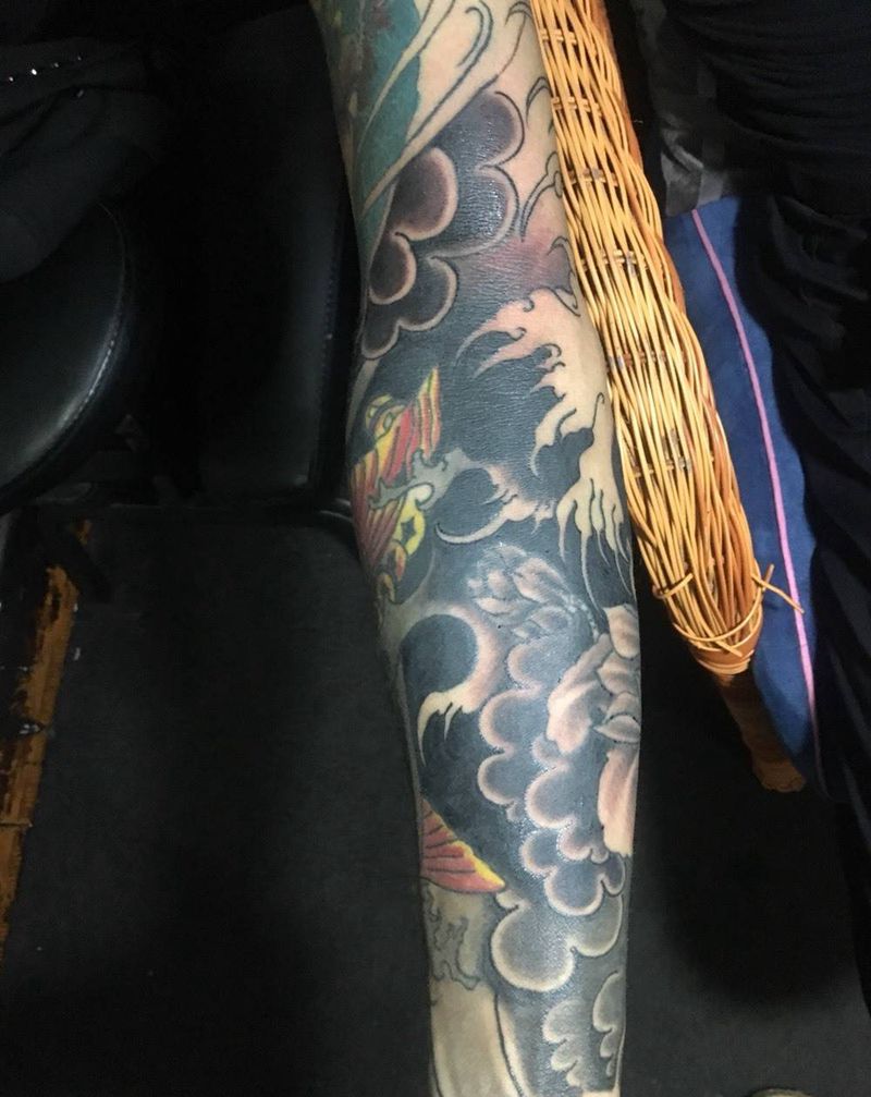 • T网红王老大花腿龙纹身图片_腿部新传统纹身图案