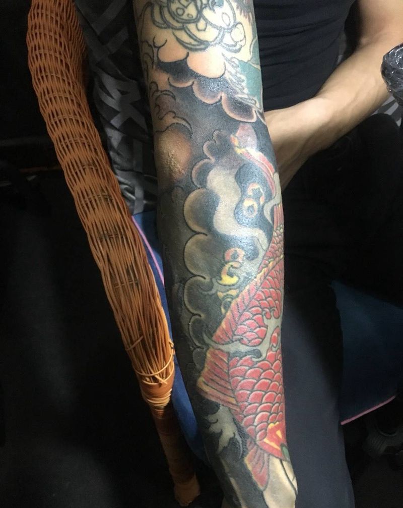 • T网红王老大花腿龙纹身图片_腿部新传统纹身图案