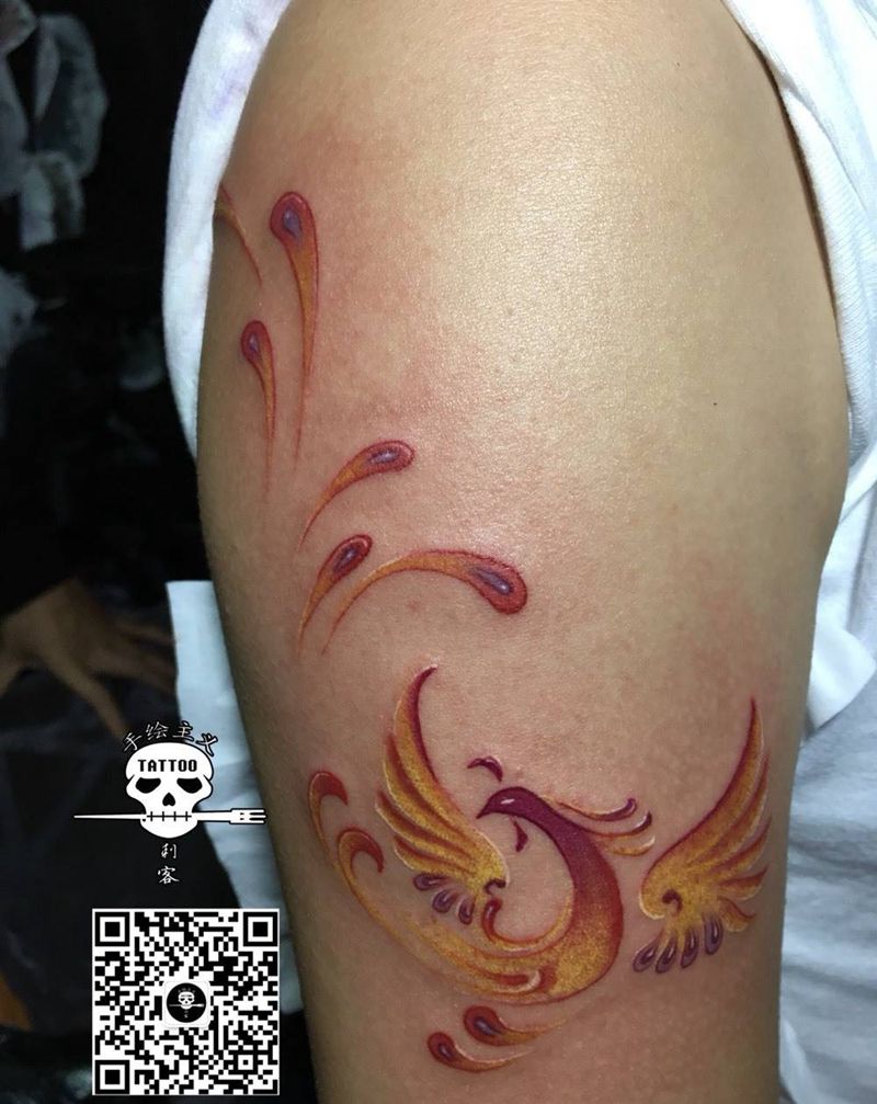 当前位置: 首页 >云南省文山苗族自治州纹身店-手绘主义刺客纹身图案>凤凰纹身图片_成品手臂传统清新习俗国画动物纹身图案