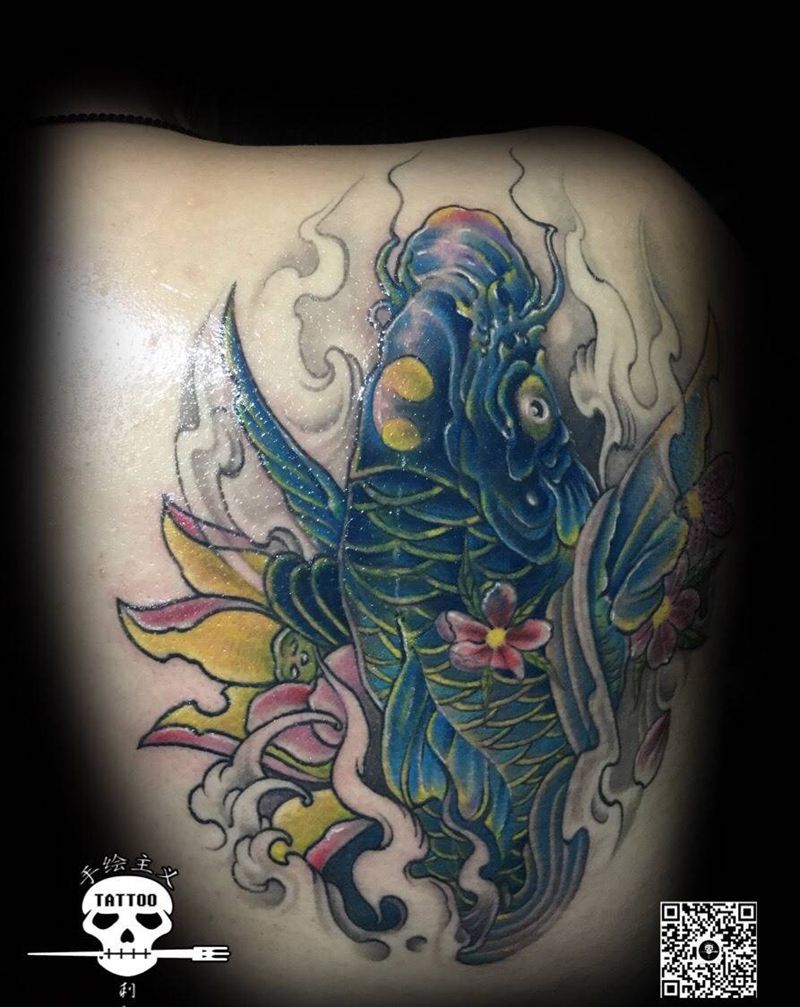 当前位置: 首页 >云南省文山苗族自治州纹身店-手绘主义刺客纹身图案>锦鲤纹身图片_成品背部传统动物纹身图案