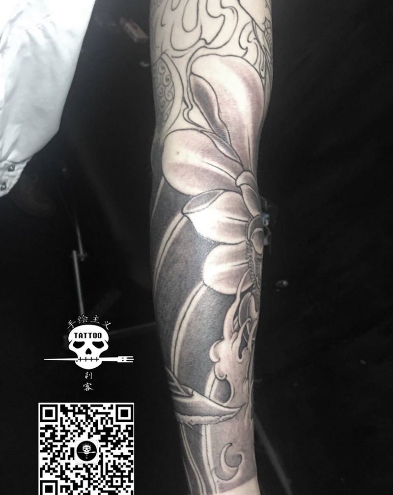 一组15张莲花纹身手