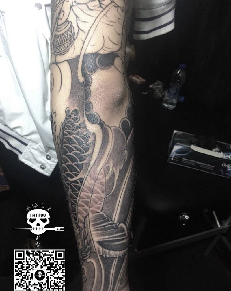 • T网红王老大花腿龙纹身图片_腿部新传统纹身图案