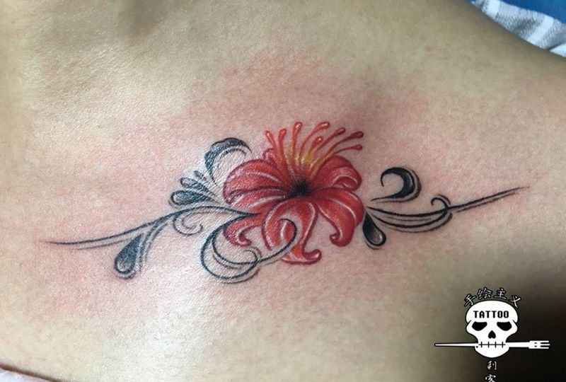 彼岸花纹身图片_成品胸部清新植物纹身图案