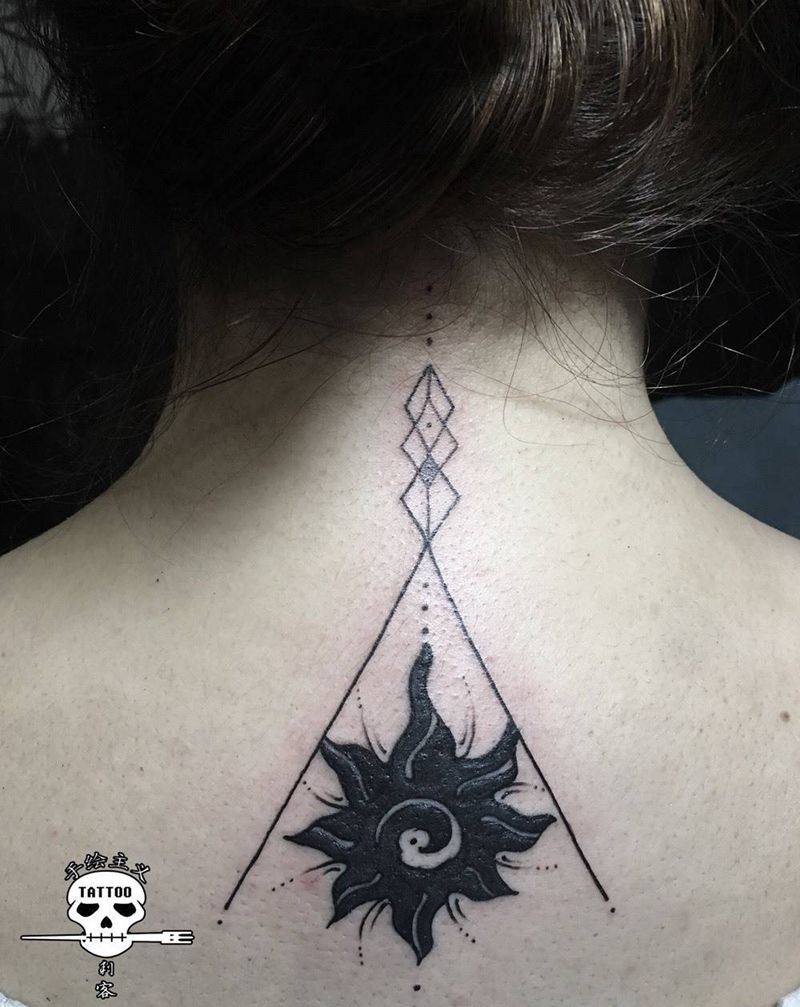 当前位置: 首页 >云南省文山苗族自治州纹身店-手绘主义刺客纹身图案>遮盖纹身图片_成品颈部清新原创字符植物图腾静物几何纹身图案