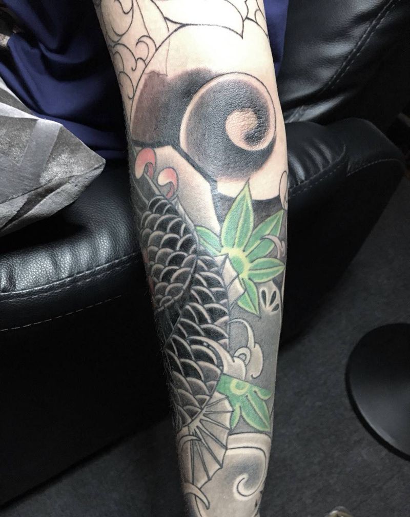• T网红王老大花腿龙纹身图片_腿部新传统纹身图案