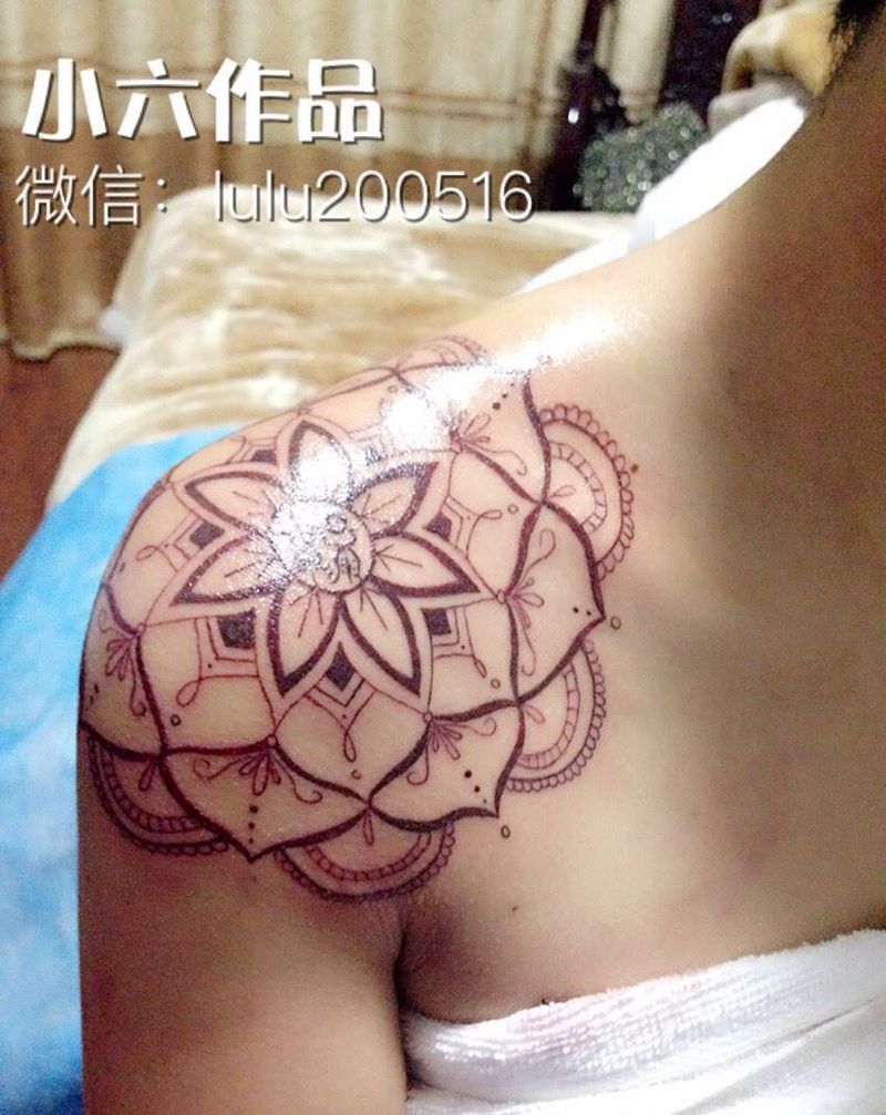 红色曼陀罗——血腥的爱纹身图片_成品肩部纹身图案