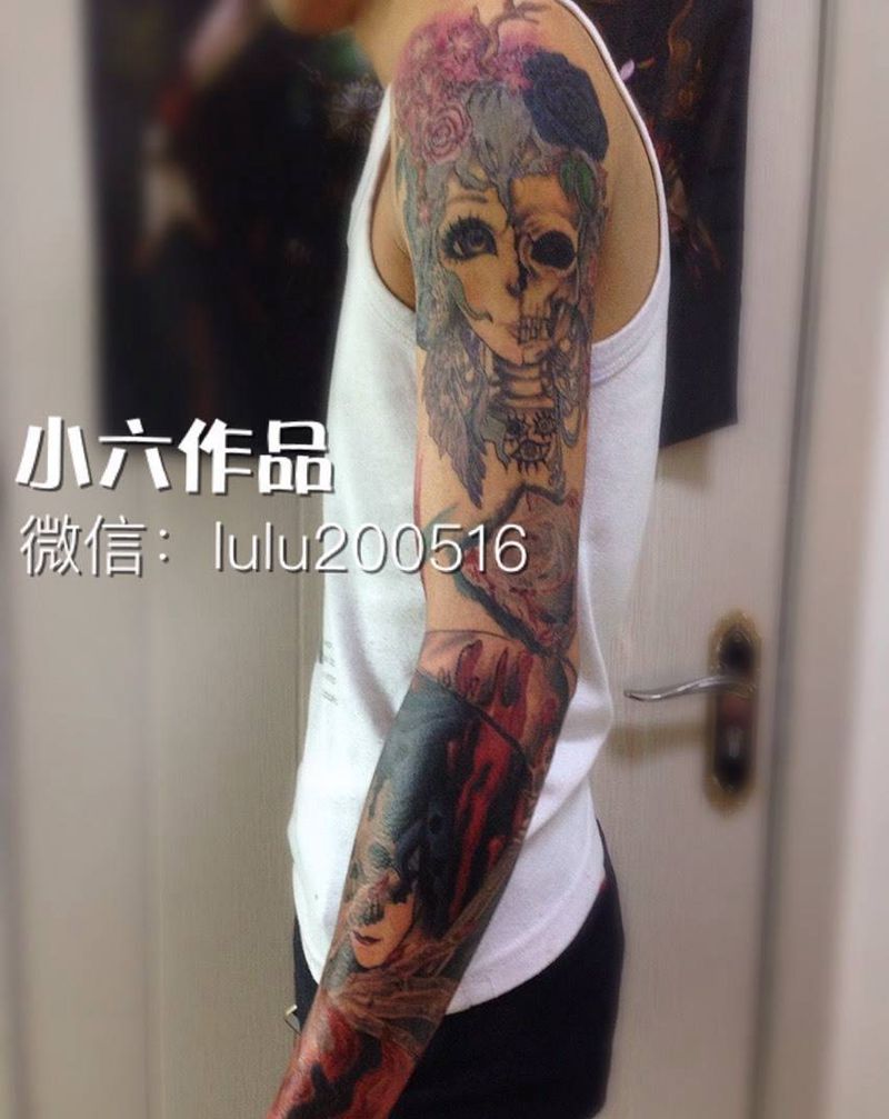 彩色花臂纹身图片_成品手臂欧美纹身图案
