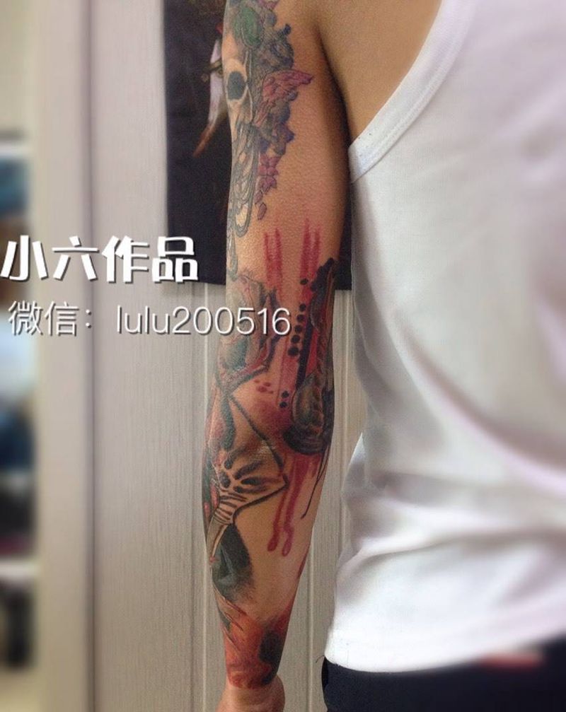 彩色花臂纹身图片_成品手臂欧美纹身图案