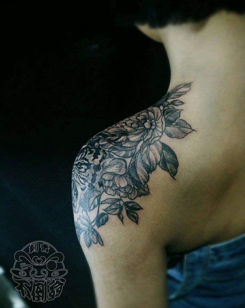 心有猛虎,细嗅蔷薇纹身图片_素花纹身图案