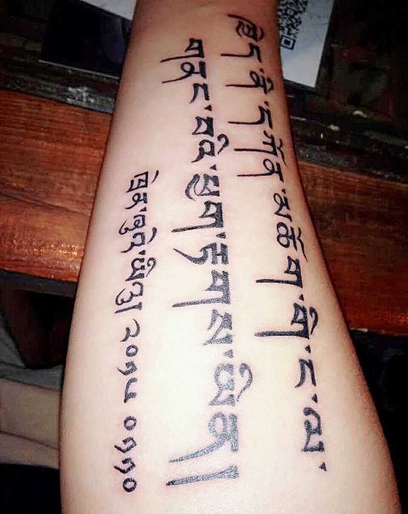 当前位置: 首页 >云南省大理白族自治州纹身店-不倒翁刺青穿孔(大理店)纹身图案>藏文纹身图片_手臂字符六刺青大理成品纹身图案