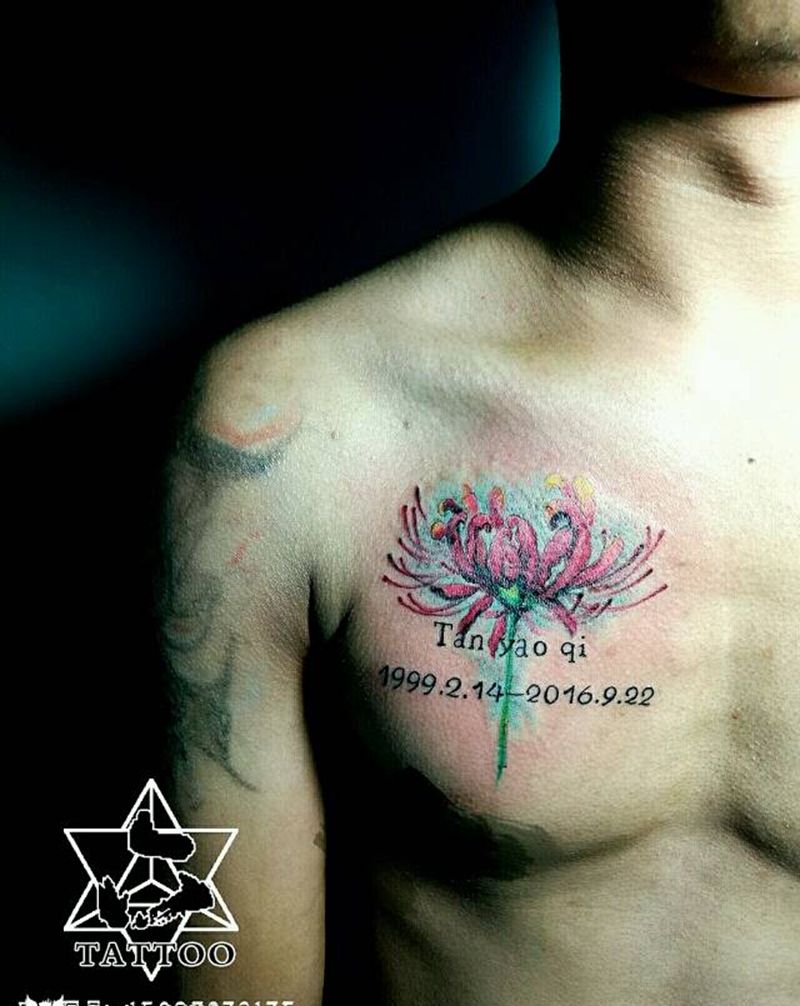 逝纹身图片_胸部植物大理六刺青成品纹身图案