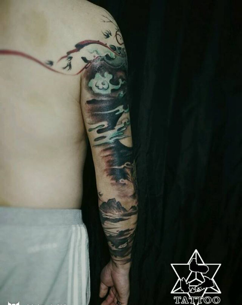 执纹身图片_手臂水墨国画大理成品纹身图案