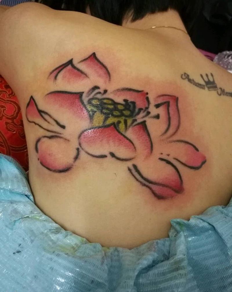 当前位置: 首页 >云南省大理白族自治州纹身店-不倒翁刺青穿孔(大理店)纹身图案>莲花遮盖纹身图片_肩部清新成品纹身图案