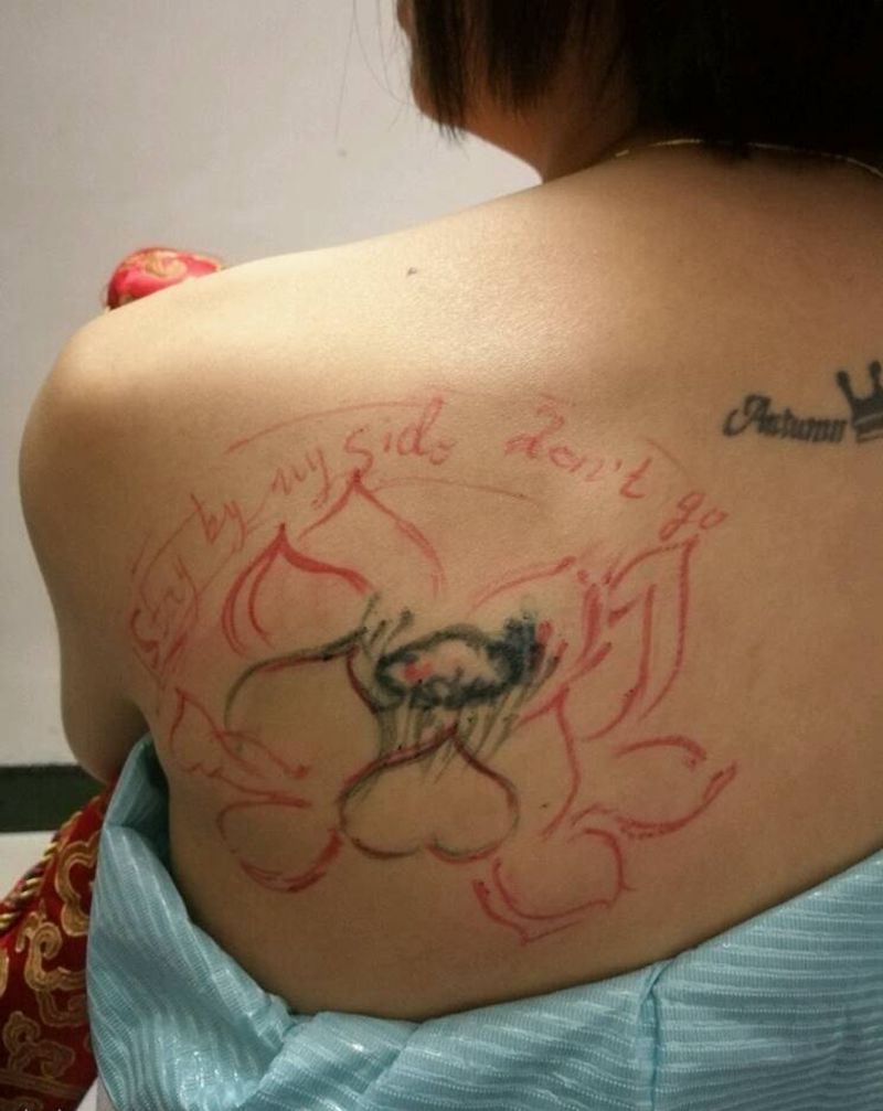 当前位置: 首页 >云南省大理白族自治州纹身店-不倒翁刺青穿孔(大理店)纹身图案>莲花遮盖纹身图片_肩部清新成品纹身图案