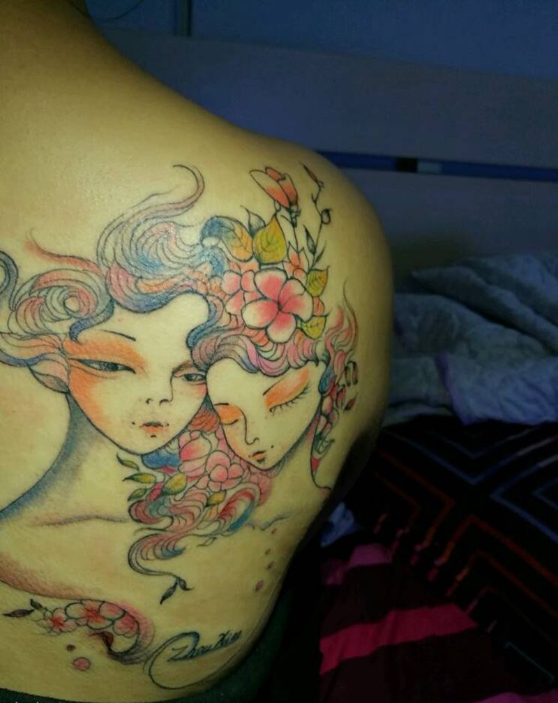 当前位置: 首页 >云南省大理白族自治州纹身店-不倒翁刺青穿孔(大理店)纹身图案>双子座…纹身图片_肩部欧美清新成品纹身图案