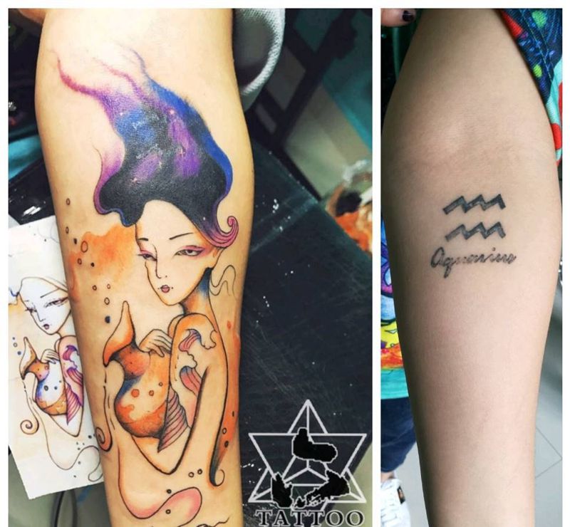 水瓶遮盖水瓶纹身图片_手臂清新大理六刺青成品纹身图案
