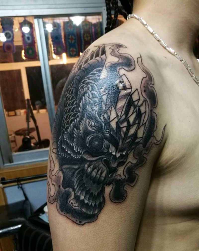 当前位置: 首页 >云南省大理白族自治州纹身店-不倒翁刺青穿孔(大理店)纹身图案>遮盖作品纹身图片_肩部欧美大理六刺青成品纹身图案