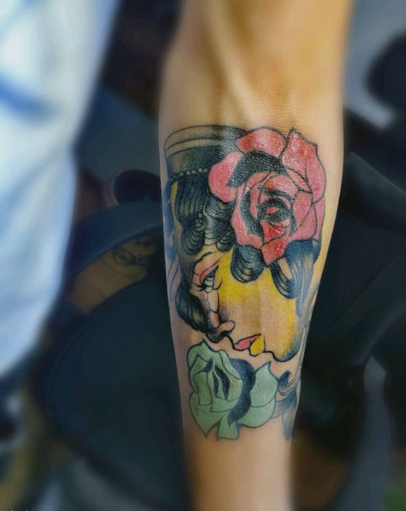 欧美大妞纹身图片_手臂欧美人物大理六刺青成品纹身图案