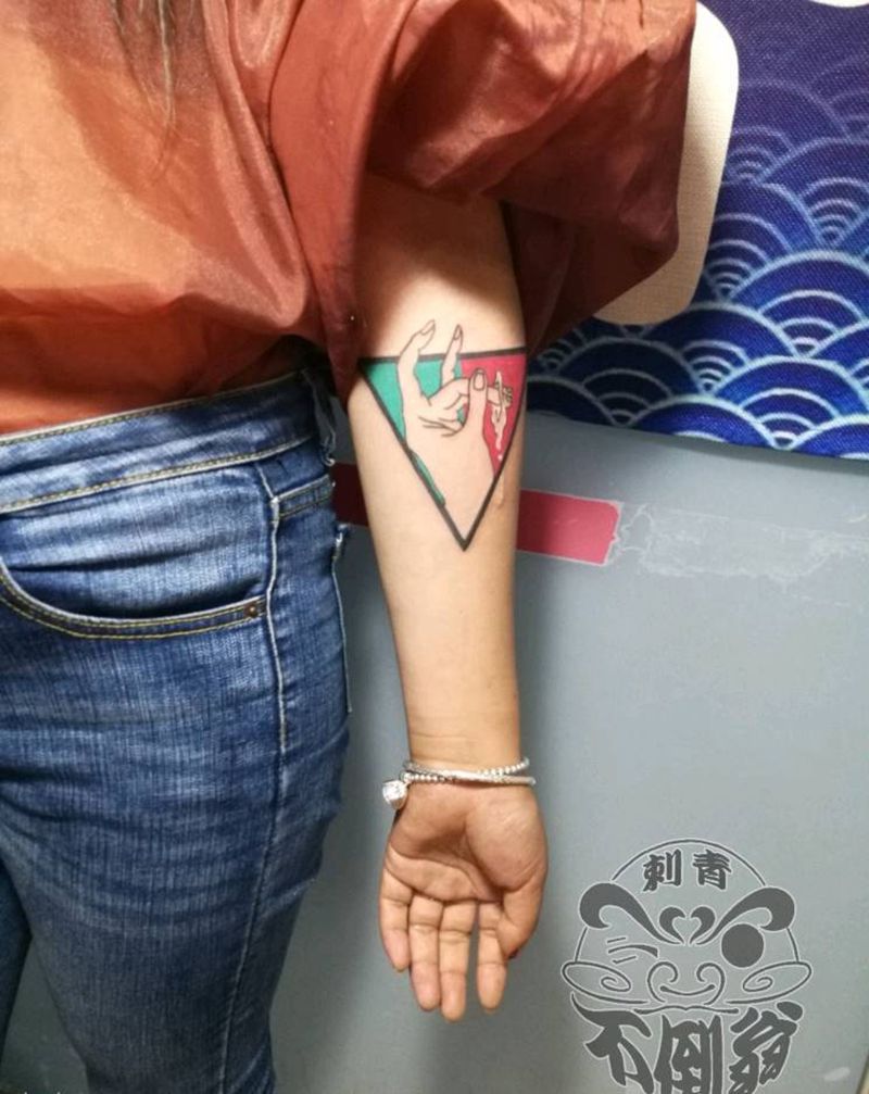 原创手指纹身图片_手臂欧美几何原创成品纹身图案