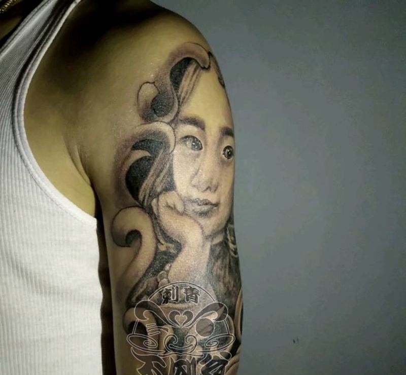 当前位置: 首页 >云南省大理白族自治州纹身店-不倒翁刺青穿孔(大理店)纹身图案>肖像写实纹身图片_手臂写实人物成品纹身图案